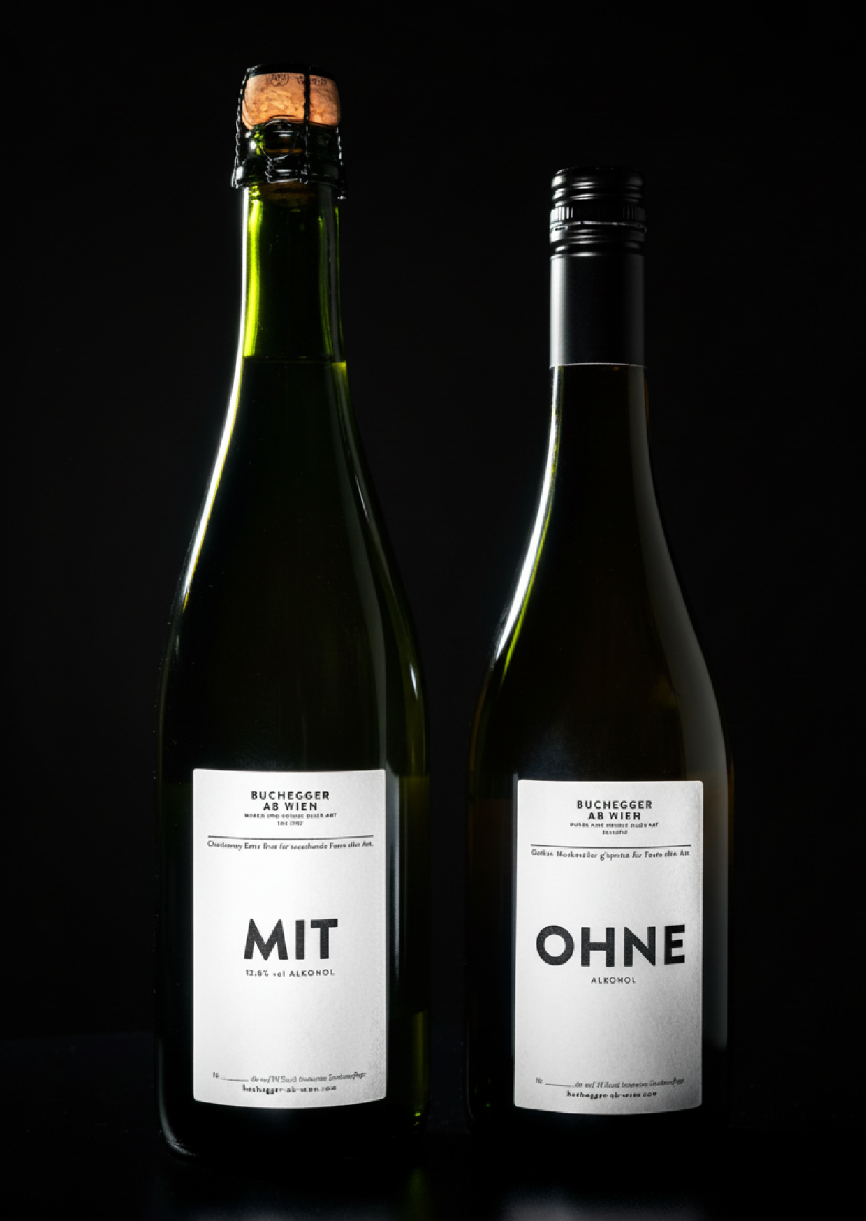 Sekt mit Alkohol Sekt ohne Alkohol Die ultimativ reduzierten Etiketten im klassischen Buchegger ab Wien Branding und Corporate Design. Seit 20 Jahren in Verwendung und noch immer zeitlos.