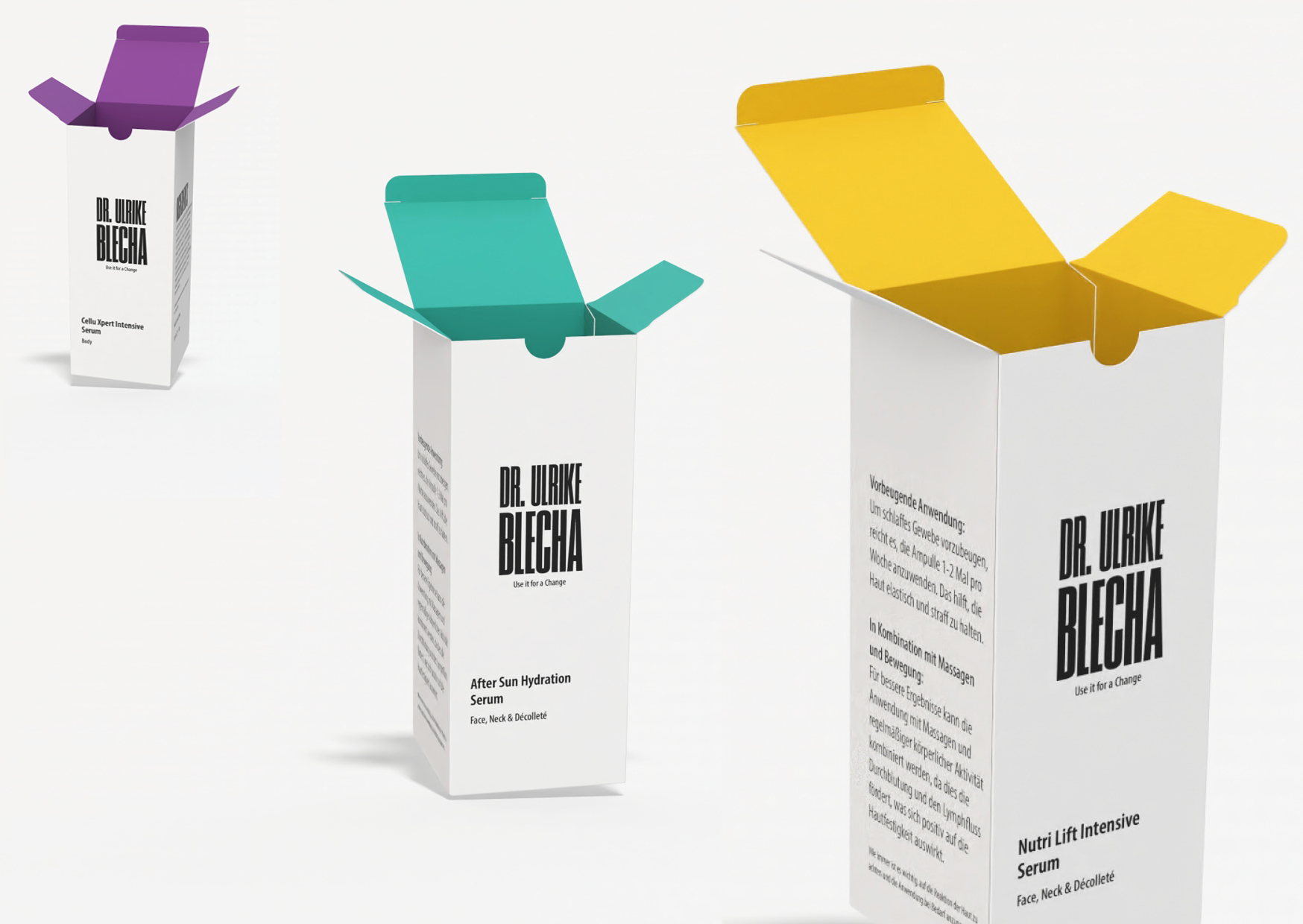 Die Innenseiten der Verpackungen wurden mit dem bestehehenden Farbkonzept visualisiert.